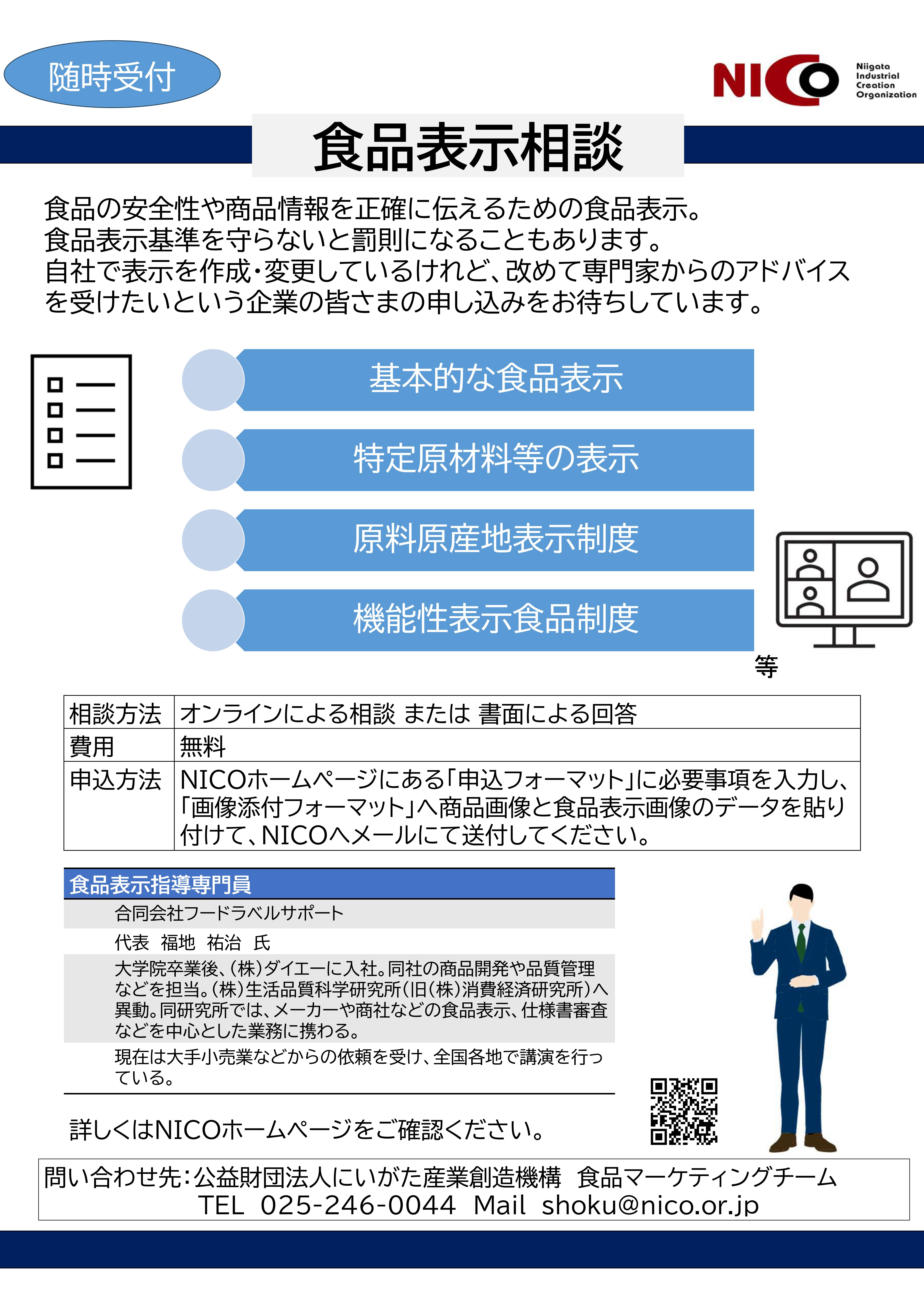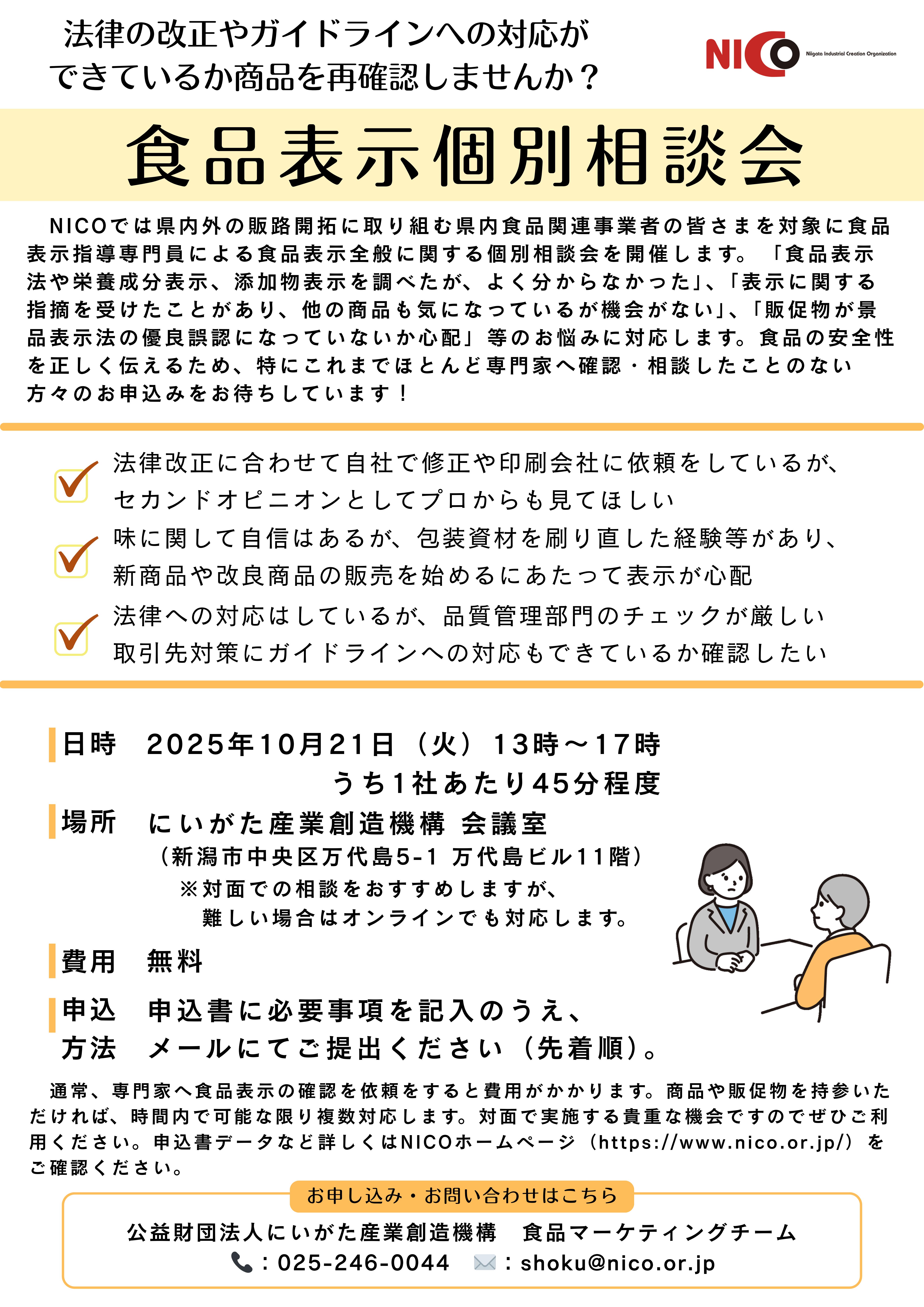 10/21(火)「食品表示全般に関する個別相談会」のご案内(NICO)