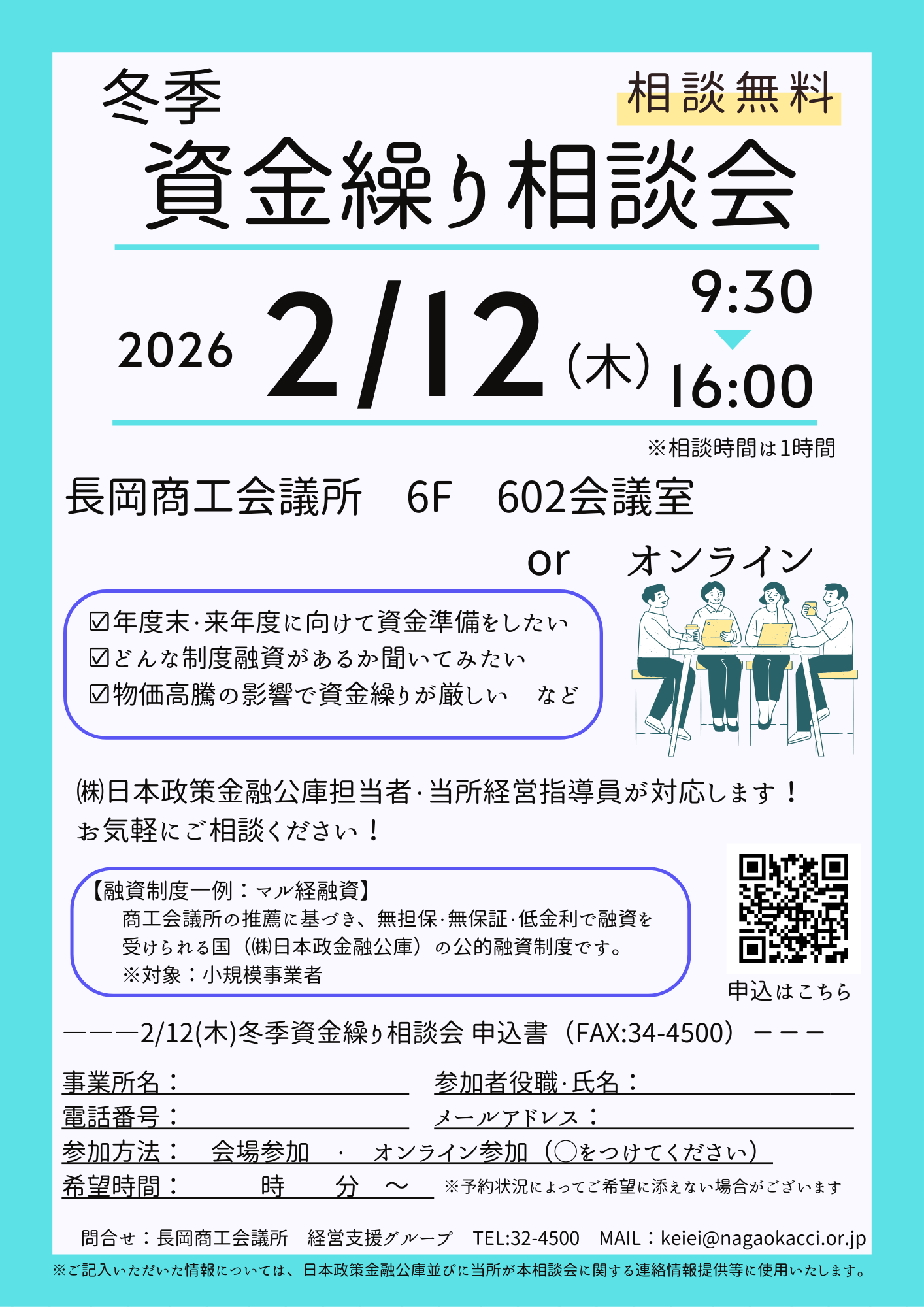 お問合せ/経営支援グループ TEL:0258-32-4500 MAIL:keiei@nagaokacci.or.jp