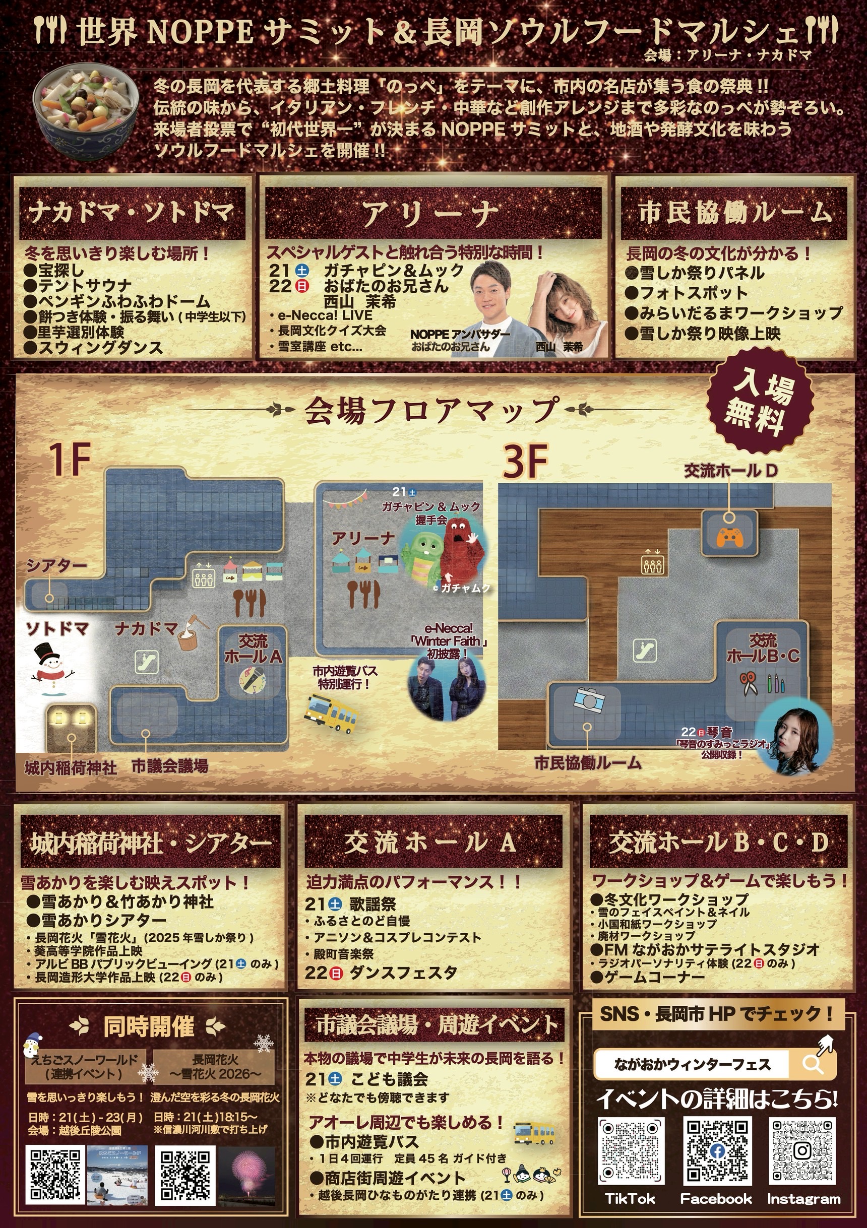ゲスト「NOPPEアンバサダー」トークショー、長岡文化クイズ大会、雪室講座等。