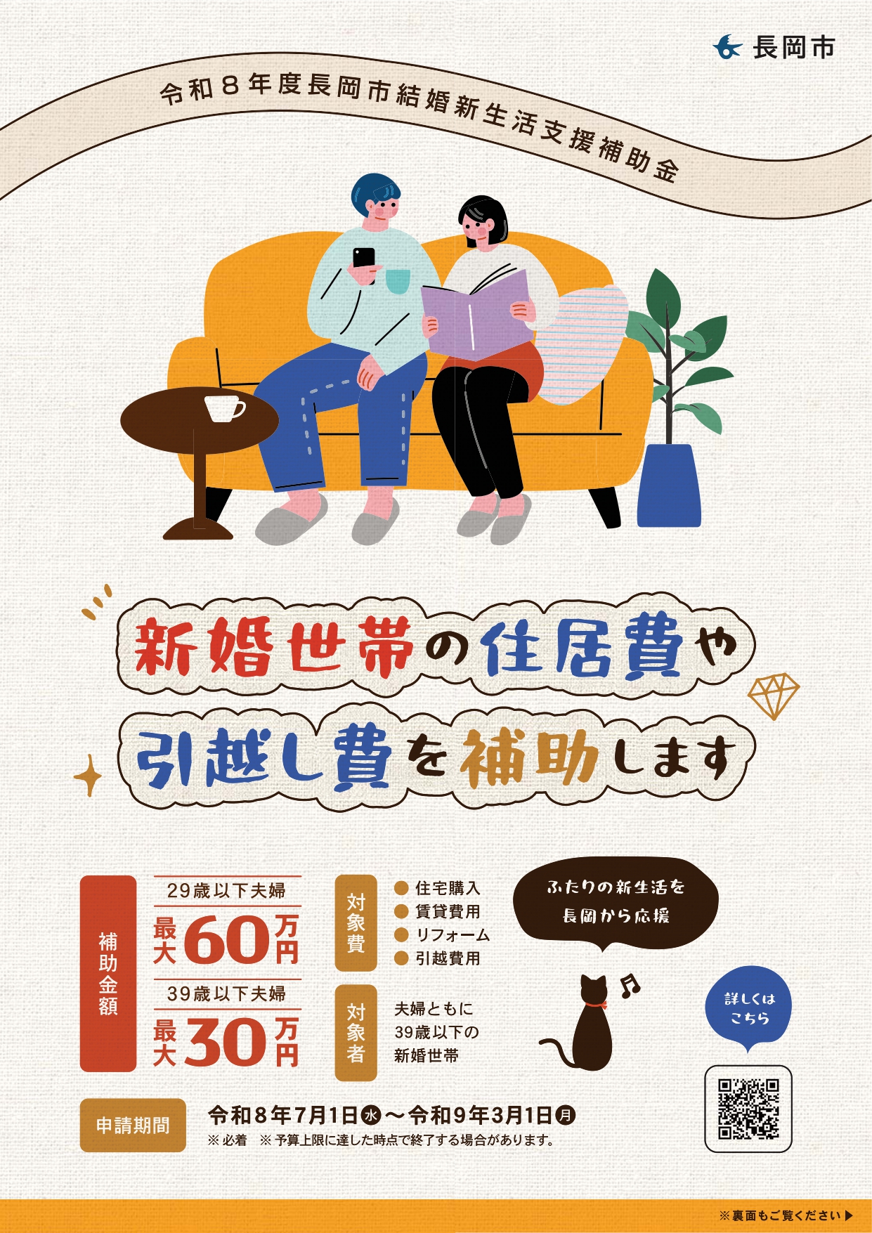 【長岡市結婚新生活支援補助金】 令和8年7月1日(水曜日)から申請受付開始
