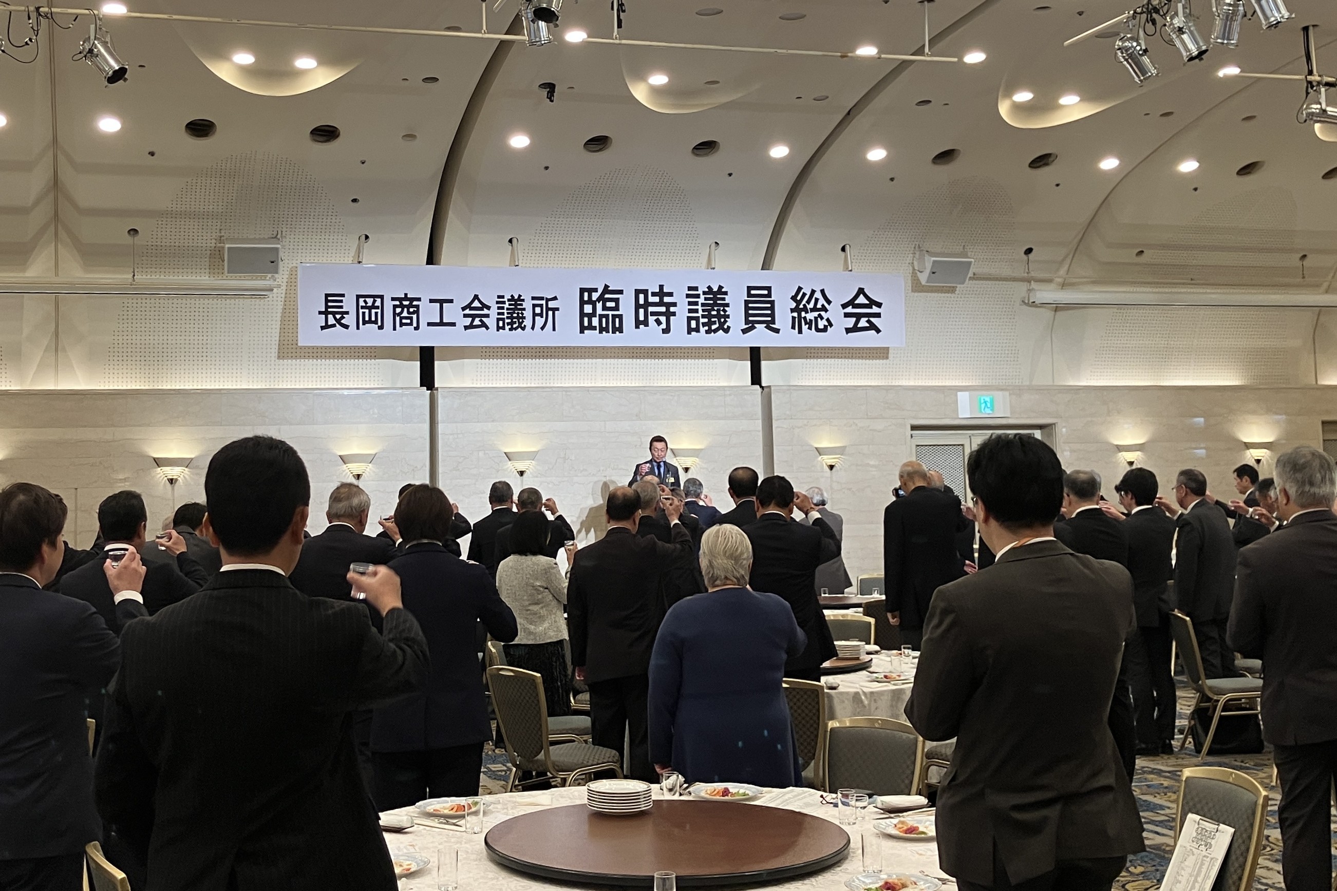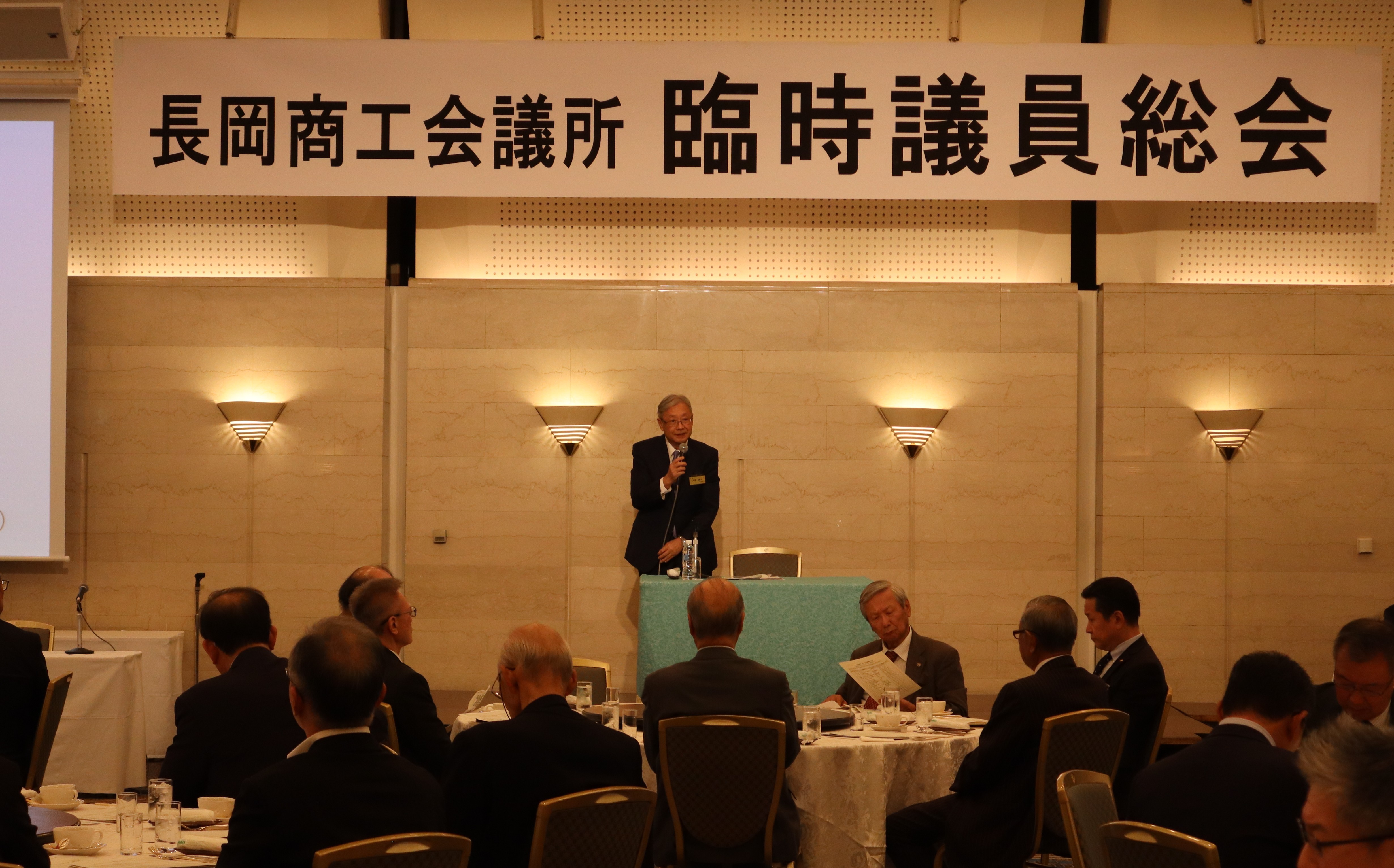 11/4(火)ホテルニューオータニ長岡において、11月常議員会並びに臨時議員総会を開催。総会において、任期満了に 伴う役員等の選任について審議いただき、大原興人会頭、